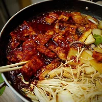 색깔은 왠지 생고기 구이 같지만, 실은 양념된 고기.