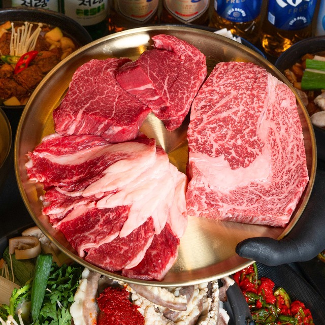 색깔은 왠지 생고기 구이 같지만, 실은 양념된 고기.